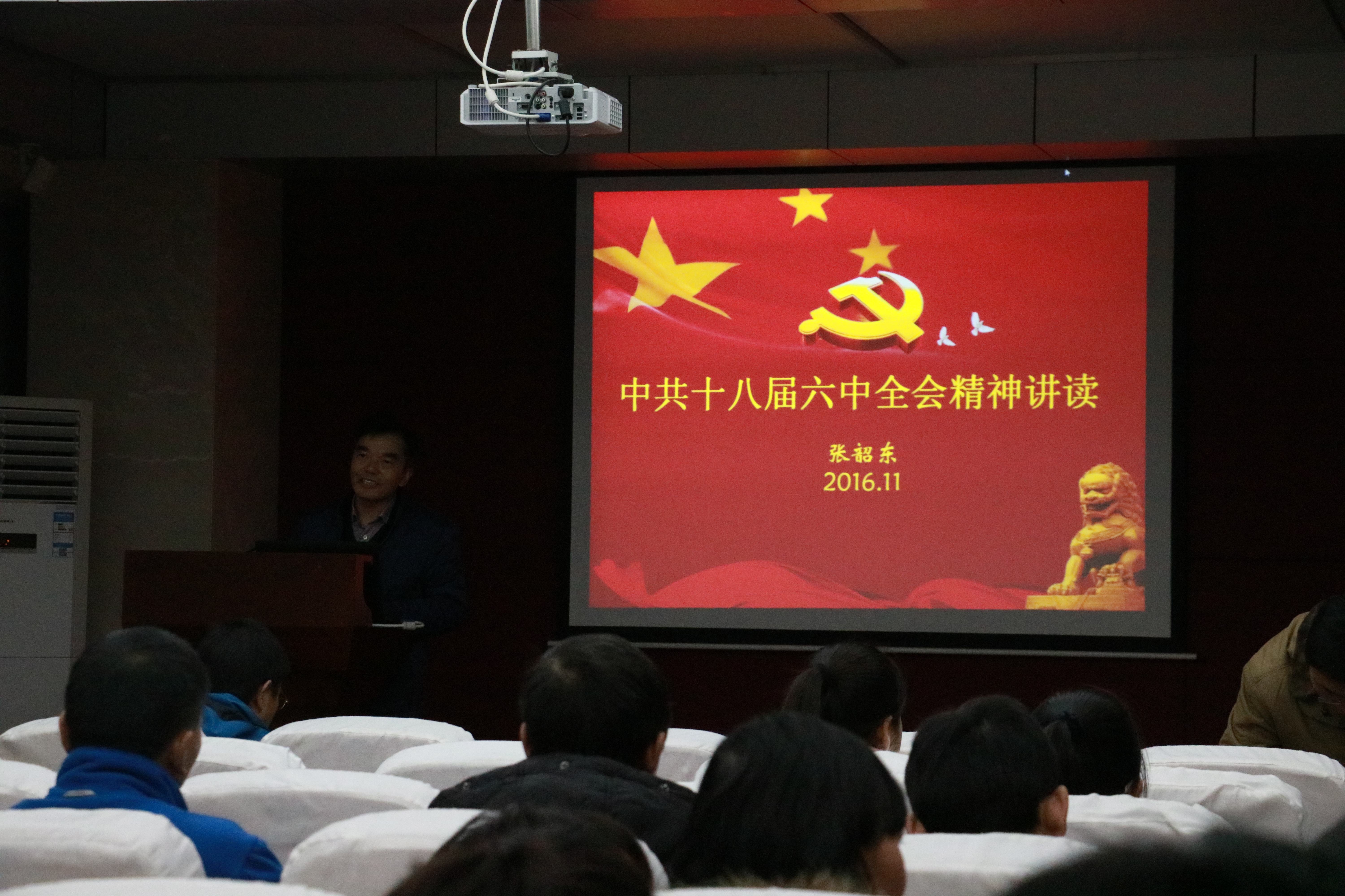 11月24日下午,香蕉视频 举办主题党日学习贯彻党的十八届六中全会精神,香蕉视频 60余名教职工参加,香蕉视频 党委书记张韶东主持会议。