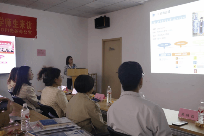 活动伊始,MDPI光谷办公室经理马莉和BioChem科室科长耿舵带领同学们探访编辑部门的工作场景,宽敞的办公室、每日更新的水果、甜点下午茶让同学们切实体会到企业的人文关怀。