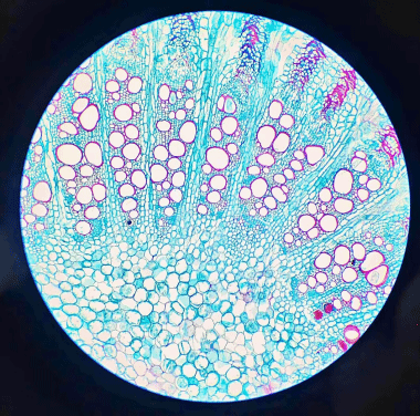 一等奖作品《孔雀扇》(原始素材为夹竹桃茎维管组织切片)
