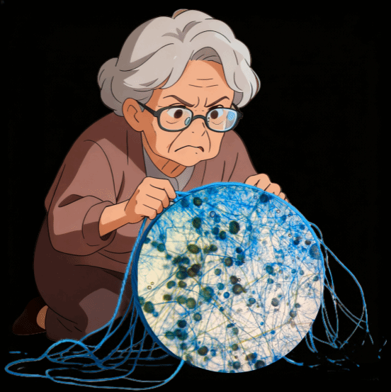 一等奖作品《奶奶与毛线球的较劲》(原始素材为曲霉吕氏美兰压片)