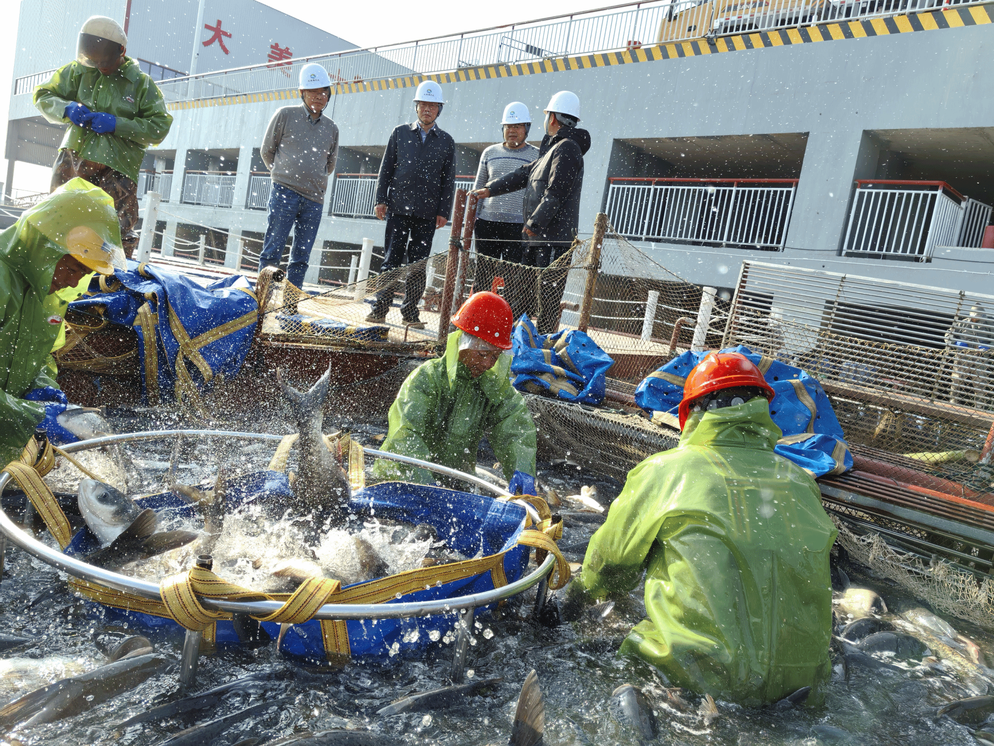下午服务团队赶赴大冶湖鱼类冬季捕捞现场,在黄石市大冶湖生态文化旅游开发有限公司副经理魏蒲生的陪同下查看了准备出水外运销售的商品鱼在网箱跑道中的健康状况和品质,提出了湖泊水位下降对鱼类不利影响的减缓措施。上岸后在大冶湖综合码头办公室,服务团队与黄石市农业发展集团有限公司副总经理兼黄石市大冶湖生态文化旅游开发有限公司董事长李从玉、黄石市大冶湖生态文化旅游开发有限公司总经理尹立强等就大冶湖禁渔期调整、黄石市农业高质量发展研究院筹建和重点项目谋划以及捕捞节筹办和党支部结对共建活动开展等进行了交流,明确了双方下一步在共同推进黄石市乡村振兴特别是农业产业振兴中的努力方向。