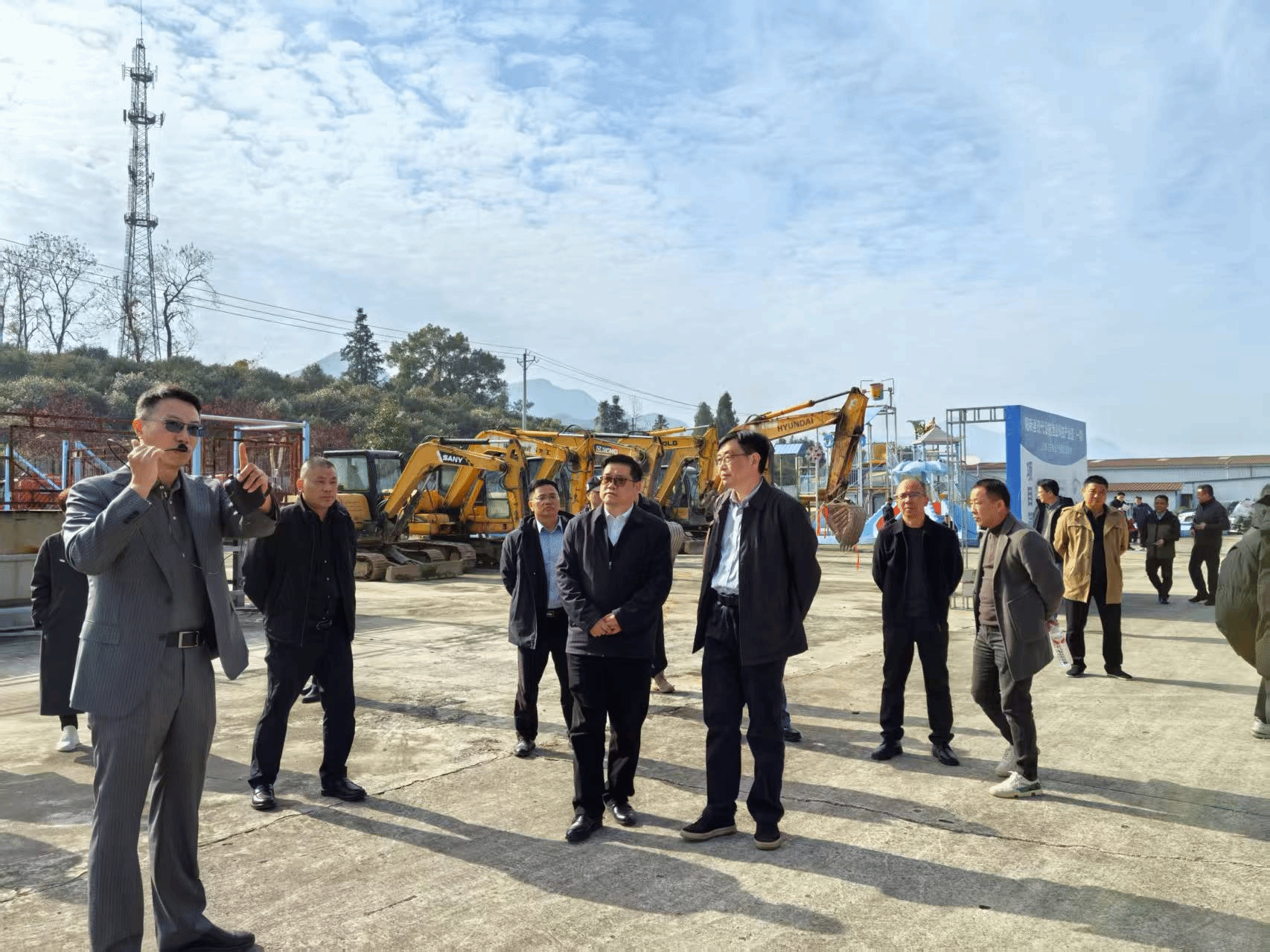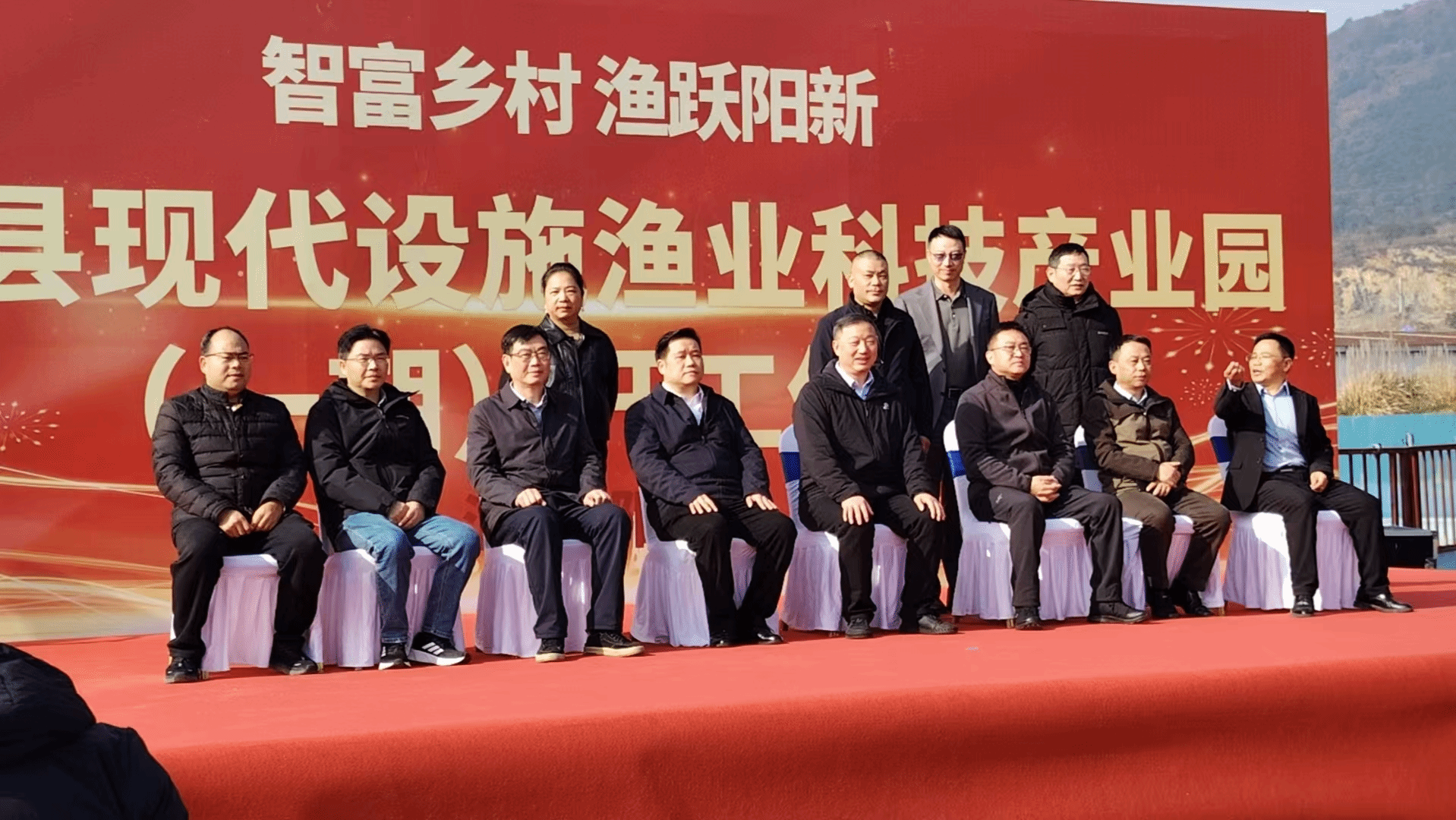 养殖有限公司等单位领导以及其他三文鱼生产、贮运、加工和餐饮等相关企业高管一起参加在这里举行的阳新县现代设施渔业科技产业园暨优质三文鱼产业链示范基地项目开工仪式并合影留恋,在参观园区和基地后科技服务团队与政企代表座谈,对于阳新县淡水鱼特别是三文鱼产业链的建设提出了指导意见和具体建议。