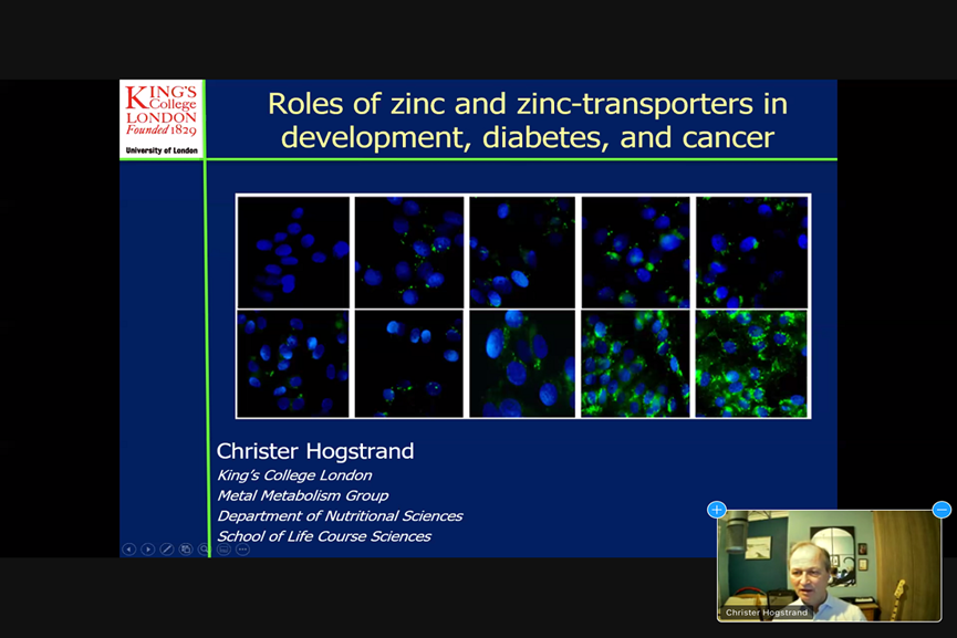 的Christer Hogstrand教授通过介绍全世界锌缺乏的患病率及其所导致的一系列病症,介绍了对锌和锌转运蛋白在个体发育、糖尿病和癌症中相关作用的研究,探究锌及新转运蛋白在机体中参与的信号通路及调节机制。