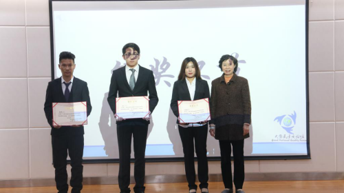 原纪委副书记陈德光,一位耄耋之年的老党员、老书记,用自学自制的PPT向同学们展示了建国以来的伟大成就,两弹一星、载人航天、港澳回归等巨大成就见证着中华民族发展史的光辉历程。作为新时代的大学生,我们正生活在一个前所未有的美好时代,更要努力学习,树立远大抱负和理想,将来有所作为,报效祖国。他最后以自己创作的一首诗作为结束:忆秦娥,贺国庆,婵娟舞,嫦娥四号创奇迹。创奇迹,吴刚开颜,厉害中国。中华新生七十载,万里长征才一步。才一步,追梦前行,只争朝夕。