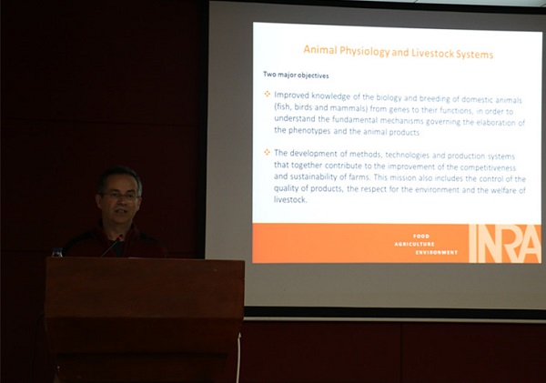 讲坛,分别作了题为“Research about fish nutrition in France”、“Dietary carbohydrate use in (carnivorous) fish : how to improve it ?”的报告,介绍了通过分子营养学手段改善肉食性鱼类对饲料中糖类利用效率低的研究内容。