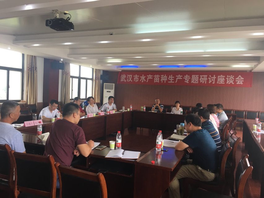 业发展现状”和“武汉市生态渔业建设改革”两个方面进行研讨,并听取各区基地负责人汇报苗种养殖情况。