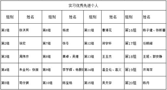 2018级综合教学实习经优秀实习评选大会评选,共评出优秀实习团队一等奖1名,二等奖2名,三等奖3名。经各小组内部推选,共评出生产实习先进个人26名。现将结果公示如下: