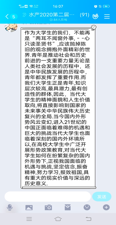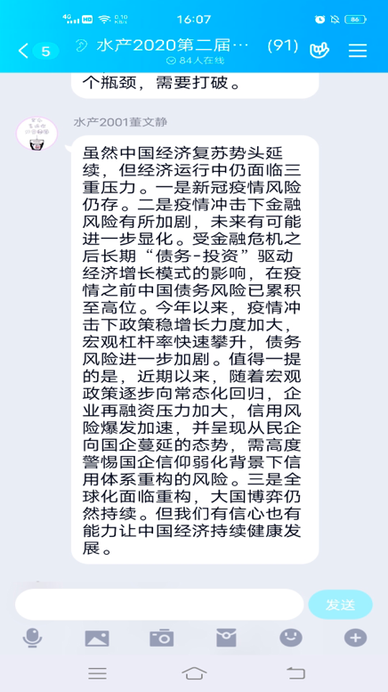 12月17日下午,香蕉视频 理论学习部开展了理论学习日活动。本次理论学习日的主题是今年11月中国国民经济发展的状况,同学们发表了自己对中国经济发展的认识及感想。在小鲤鱼的组织下,理研会的同学们积极参与,踊跃回答,同学们一直表示,中国在疫情的冲击下,成功的实现了经济复苏,但是危险依然在,中国经济依然需要持续稳定的发展。
