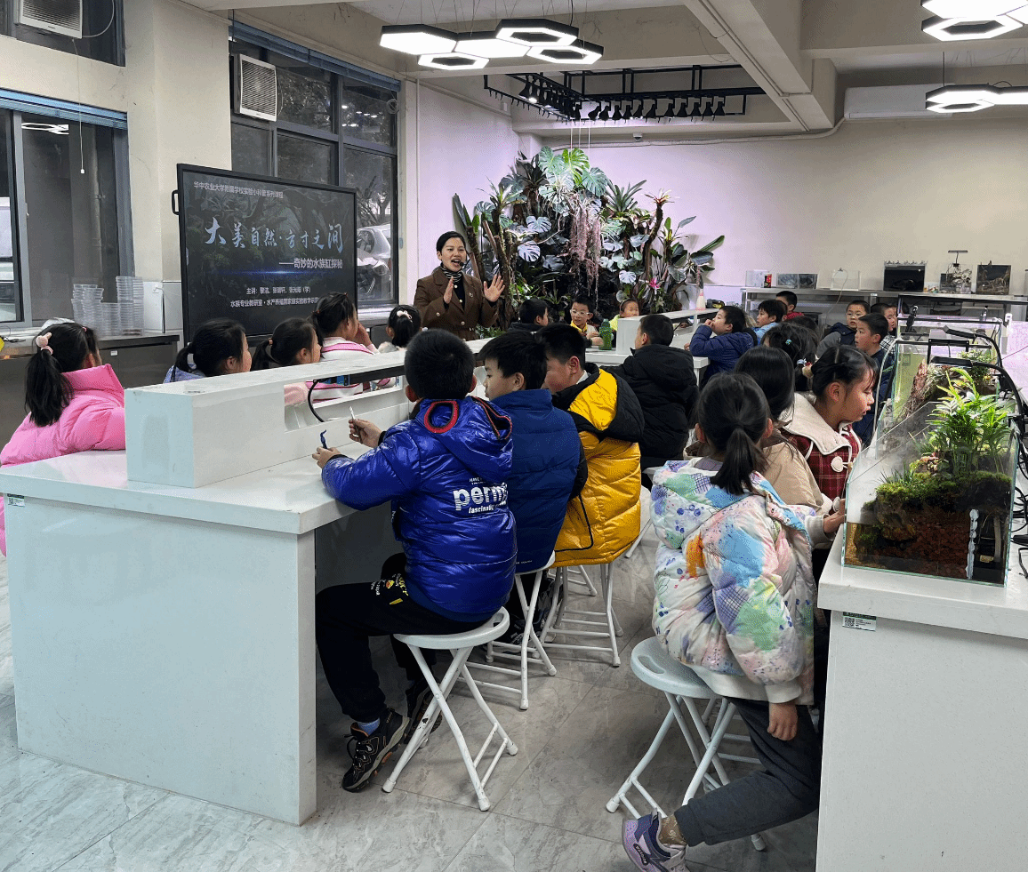 养殖国家级实验教学示范中心水族景观教室迎来了华农附属学校三年级(3)班的38名同学,中心副主任黎洁老师和中心教师张瑞轩为同学们带来了一场题为“大美自然•方寸之间——奇妙的水族缸探秘”的科普课程。