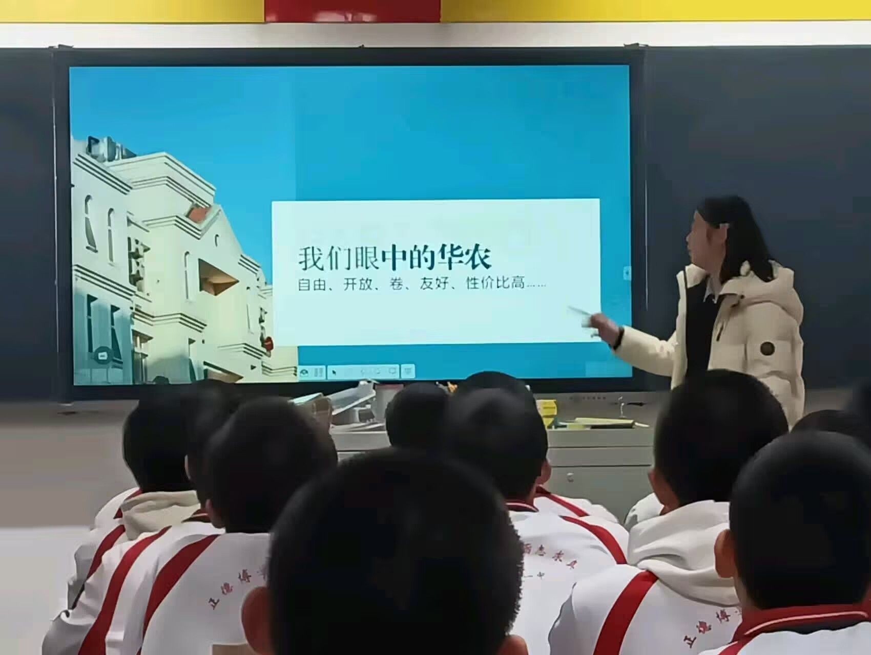 团队在班级宣讲完毕与同学们的合照(刘冰杰摄)