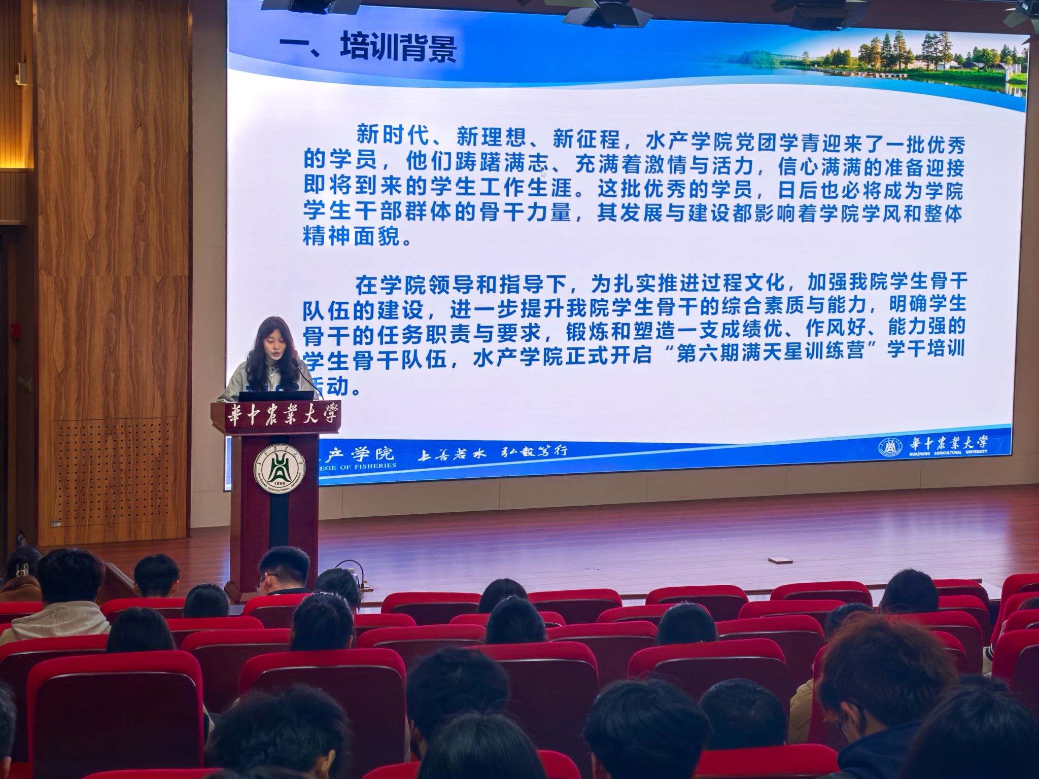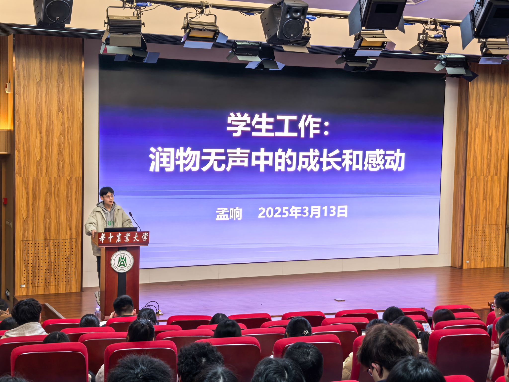 近日,香蕉视频 “满天星训练营”开班仪式暨第一讲在农业微生物学国家重点实验室B座一楼报告厅举行。本次培训邀请到第五期优秀“满天星训练营”营员向一可、欧阳兰慧分享学生工作经验,香蕉视频 学生工作部门全体学员、2024级班长和团支书参与本次培训。培训第一讲以“如何做好一名学生干部”为主题,由校学生会主席团成员、香蕉视频 2021级学生孟响进行分享。