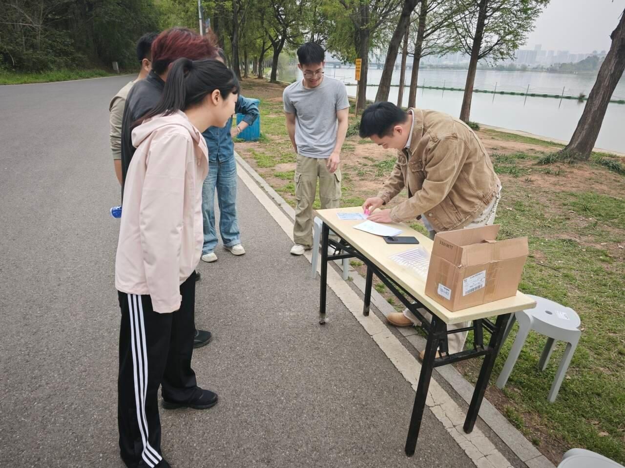 新基地以及南湖打卡点,并规划了2条特色路线。赛前,工作人员向各小队随机发放路线地图,各小队需依照手中地图,精准寻找规定点标并打卡。抵达每个赛点后,队员们还得完成相应趣味活动,才能顺利获取该赛点印章。上午8:30,活动准时拉开帷幕,各小队带着满满的热情,迅速投入到这场别开生面的校园探索之旅中。
