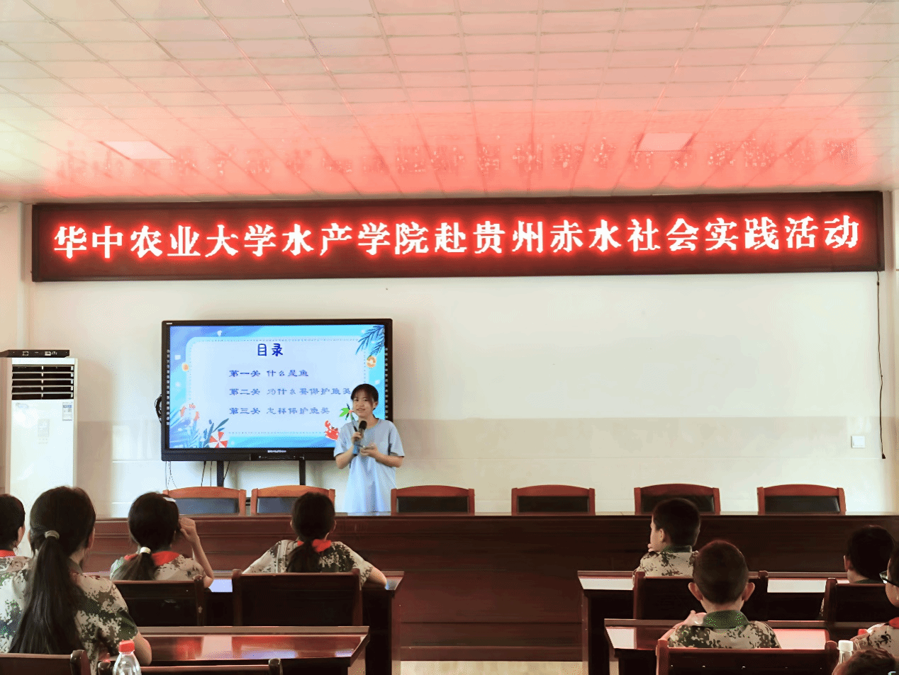 暑期社会实践团走进贵州省赤水市红军小学,以“保护鱼类就是保护我们的家园”为主题,为50余名小学生带来了一场别开生面的生态宣讲活动。通过趣味闯关、动画展示、互动问答和创意涂鸦等形式,团队成员在欢声笑语中传递鱼类保护知识,播撒生态文明的种子。