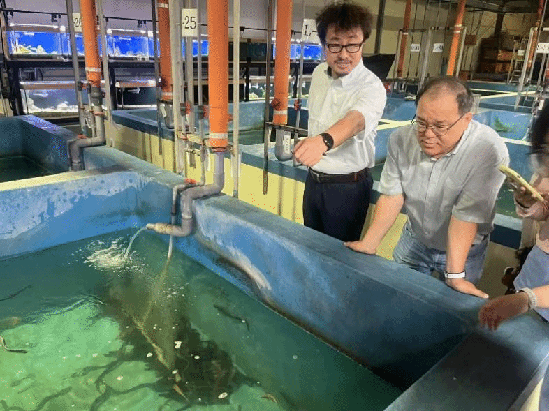 次日上午10点,访学团正式开启了本次学术交流之旅。上午在刘志强博士的引导下,访学团首先参观了群山大学校园,并对其整体布局和设施有了初步的了解。下午,访学团来到国立群山大学海洋科学大学楼。深入探访了鱼饲料的存储和制作区域。透过透明的存储罐,访学团成员观察到不同颗粒大小的饲料,直观感受到香蕉视频
