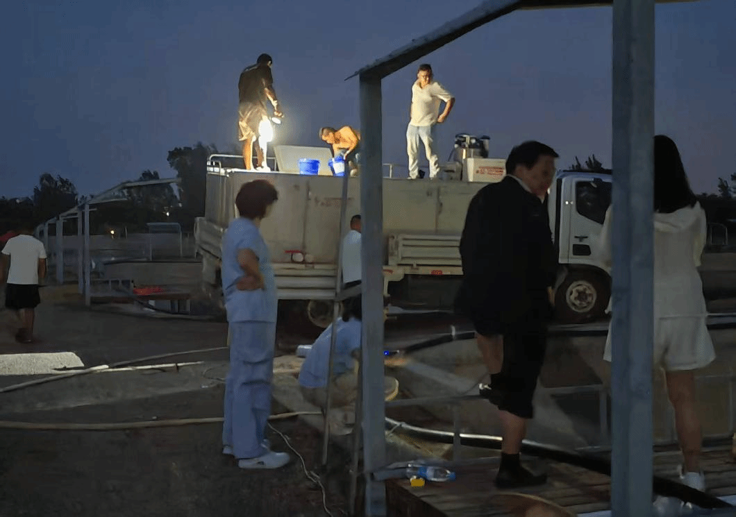 抵达当日,基地筹备鱼苗投放,前期基础设施检修是关键。队员与工人并肩作战,在烈日下检修增氧机线路、铺设管道、修补漏洞、检测水质,直到日落完成检修。
