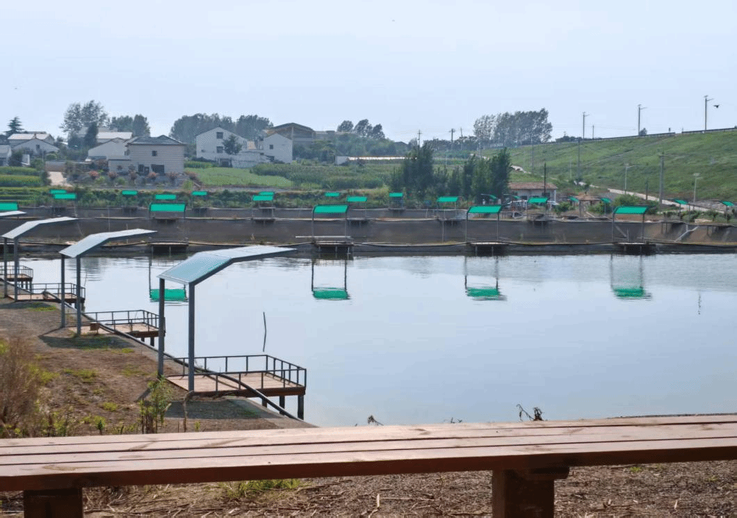鳜鱼基地。刚入基地,三块共十八亩的方形池塘映入眼帘,池底经水泥封堵,周边管道纵横,顶部排水系统整齐,体现“生态养殖 + 设施渔业”创新理念。