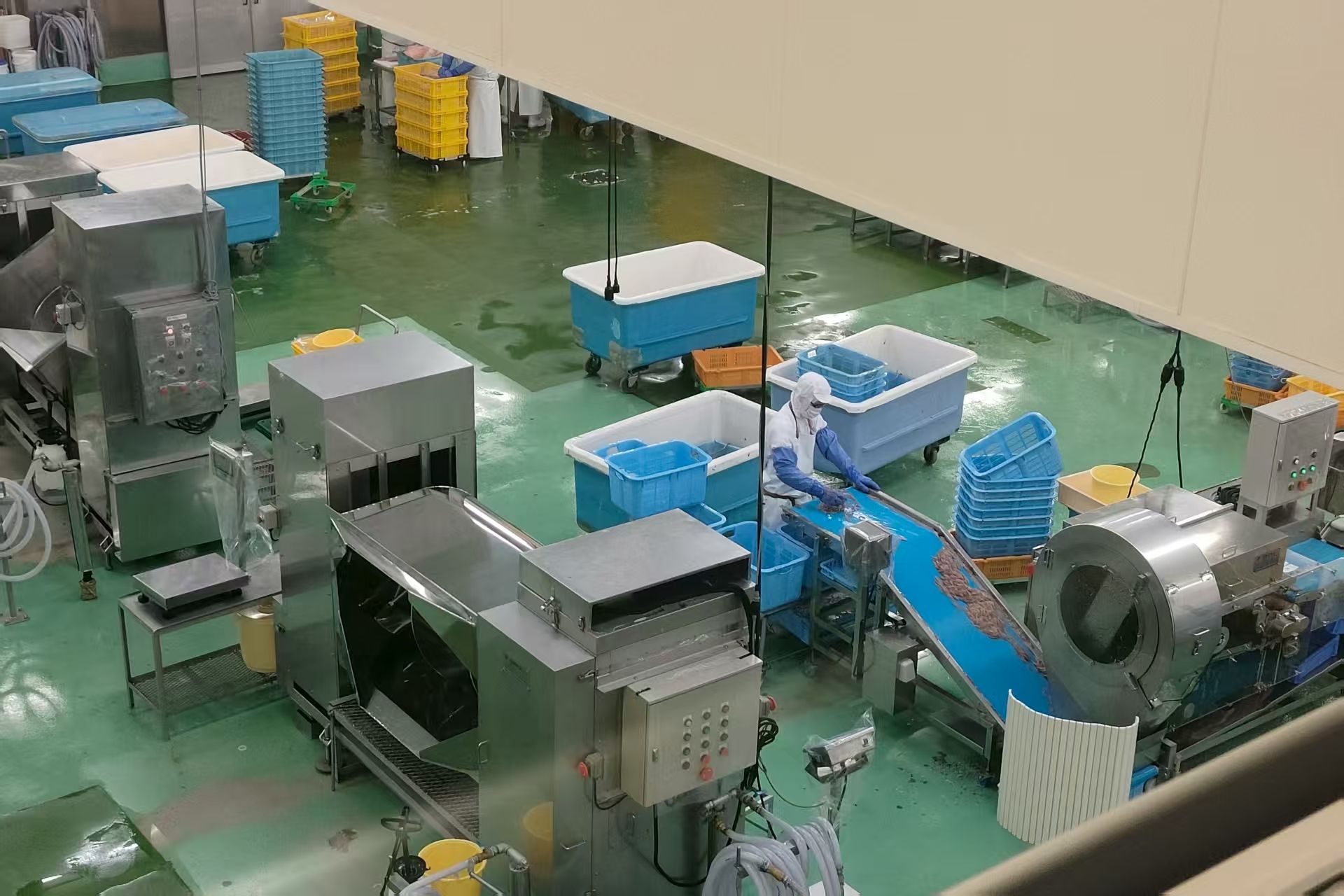 企业工厂布目有限公司。社长通过一个视频向同学们全面介绍了鱿鱼的捕捞、加工、生产、销售全流程。讲解结束后,同学们参观了工厂车间,观看鱿鱼、三文鱼的处理过程,社长耐心解答同学们的疑问。近年来鱿鱼捕捞量的急剧下降引发了同学们对于人类活动和环境变化的思考。
