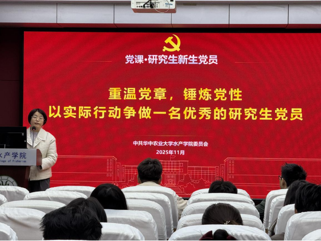 党委副书记曹玉琼主讲,以“重温党章,锤炼党性,以实际行动争做一名优秀的研究生党员”为主题,通过党章学习、优秀党员对标、入党誓词重温三大板块内容,旨在强化新生党员的身份意识,提升其党性修养,为其后续学习工作筑牢思想根基。
