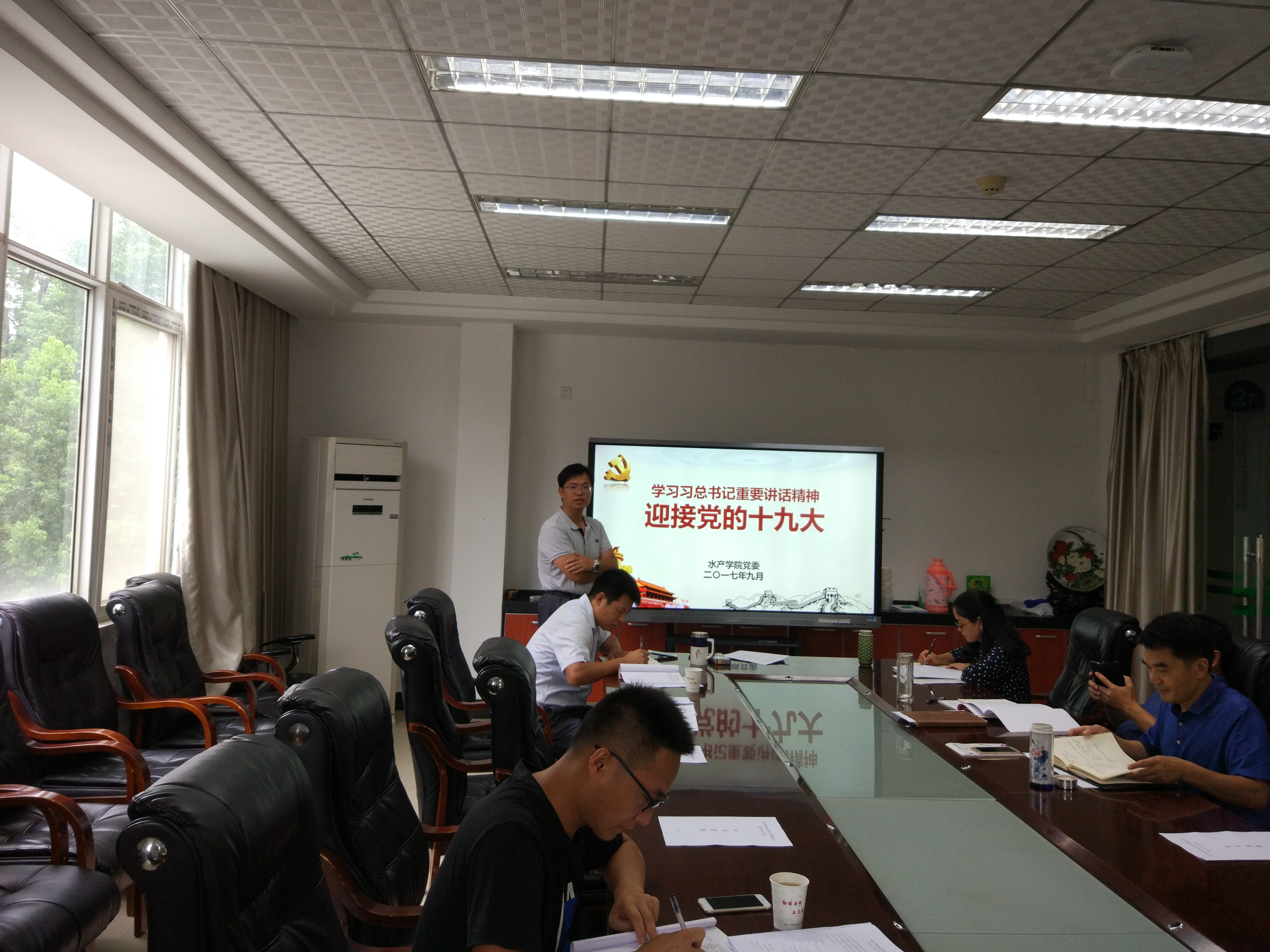 与会人员交流了学习体会。副院长黄丹表示,假期通过观看《将改革进行到底》等政论片,深入学习了这五年来我党的非凡作为。在新的历史时刻我们党将团结带领人民开启新的征程,通过讲话精神的学习使自己对“十九大”充满期待。鱼类遗传与繁育系党支部书记刘红、营养与饲料系党支部书记罗智等认为通过学习,对“7•26”讲话的重大意义和主要内容有了清晰的认识,“十九大”召开在即,要带领支部进行深入系统的学习,不断增强“四个意识”,迎接十九大的胜利召开。