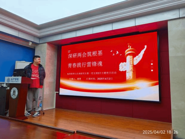 鱼类营养与生理研究生第一党支部于4月2日举办“深研两会筑根基 青春践行雷锋魂”主题党日活动。支部全体党员通过理论学习的方式,深化对国家战略和雷锋精神的理解。