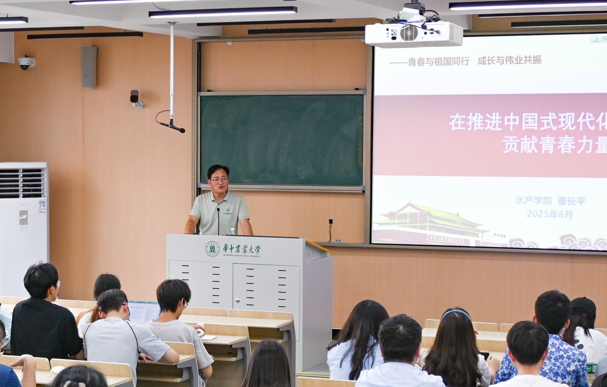 党委书记秦长平主讲,题目为在推进中国式现代化进程中贡献青春力量,辅导员和2025届本研毕业生党员参加本次活动。
