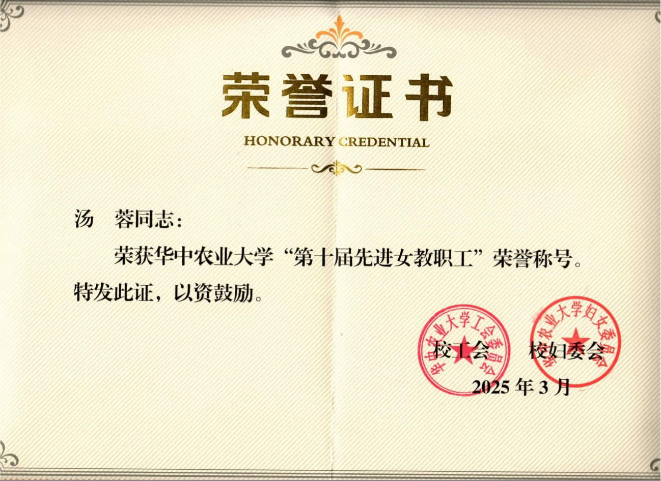 “先进女教职工”称号的感受,汤蓉感慨道:“这份荣誉不仅属于我个人,更是对所有女性教育工作者的认可。在平衡教学、科研、家庭等多重角色的过程中,女性常常需要付出更多努力,这份肯定让我倍感鼓舞。”然而,她并未将荣誉视为终点,而是把它当作新的起点,提醒自己不断精进,在教学创新、学生关怀和社会服务方面持续深耕。