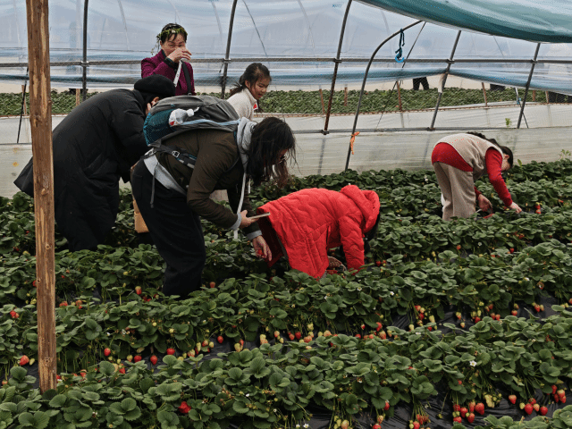 活动最后,大家来到了草莓园,开启了一场甜蜜的采摘之旅。草莓园里,一颗颗鲜红饱满的草莓在绿叶的映衬下格外诱人。孩子们兴奋地穿梭在田间,小心翼翼地采摘着成熟的果实,老师们则在一旁耐心地指导。大家的篮子里渐渐装满了红彤彤的草莓,也装满了满满的幸福与收获,满载而归。