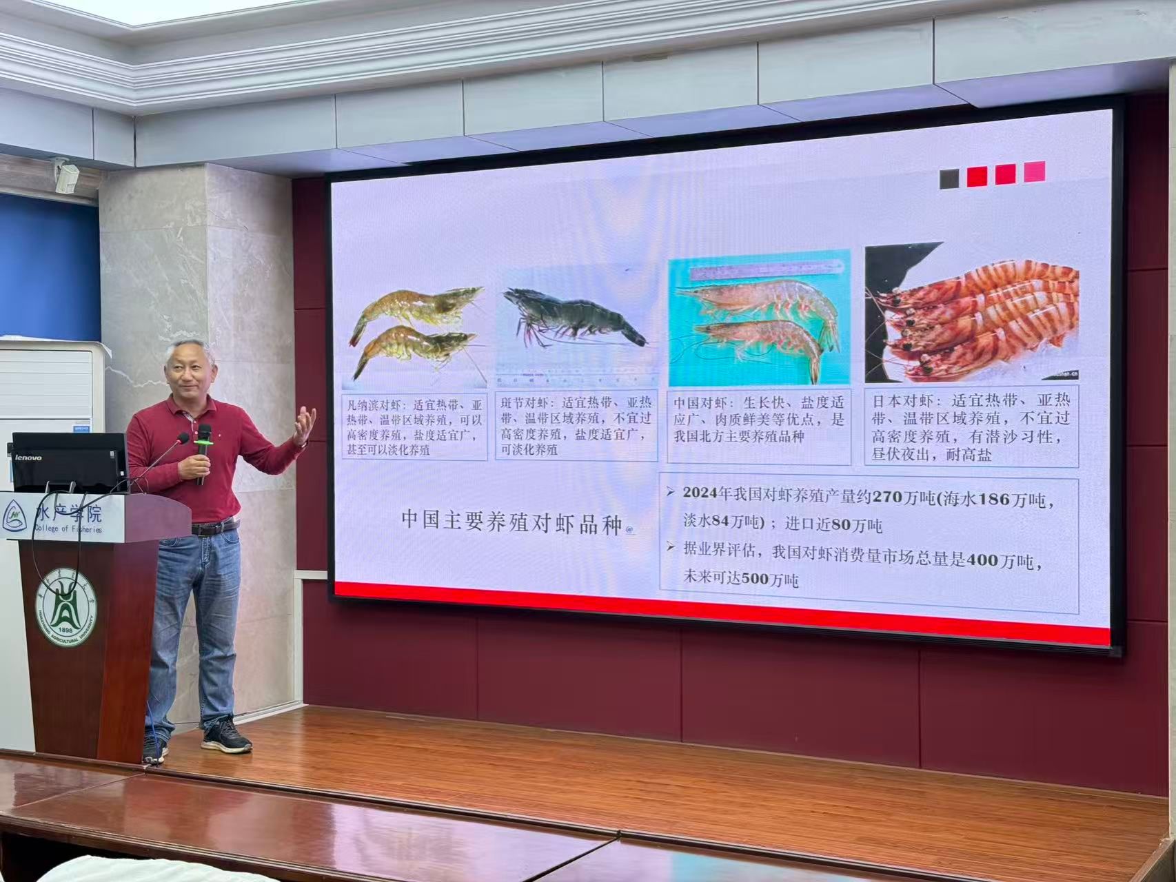 楼A座105报告厅举行,特邀张家松研究员作专题学术报告,报告题目为“中国对虾工业化养殖现状和展望”。张家松研究员详细介绍了中国养殖对虾现状与工业化趋势、国外工厂化对虾养殖情况、我国工厂化养殖对虾情况、小棚养殖技术等内容。